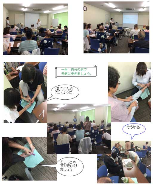 その後、看護師の堀さんの「おうちでやろうフットケア」という題でフットケアについてのはなしと