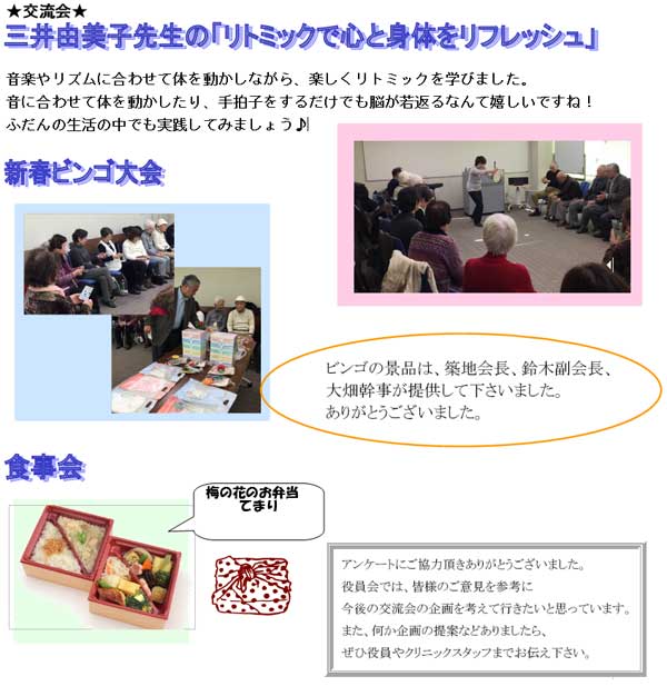企画の提案、ご意見などありましたら、役員またはクリニックのスタッフへお伝えください。 |