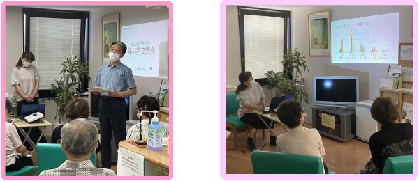 新型コロナウイルス感染症の感染拡大防止のためしばらく交流会をお休みしていたので、今回2年半ぶりの開催となりました。当日は感染防止対策を行い、普段よりも短い時間での開催でしたが、皆様のご協力のおかげで無事に終了することができました。 |