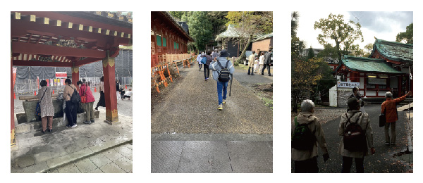 3つのグループに分かれて、それぞれガイドさんについて頂き、本殿の参拝や各お社などの建物の説明を聞いたり歴史について学びました。